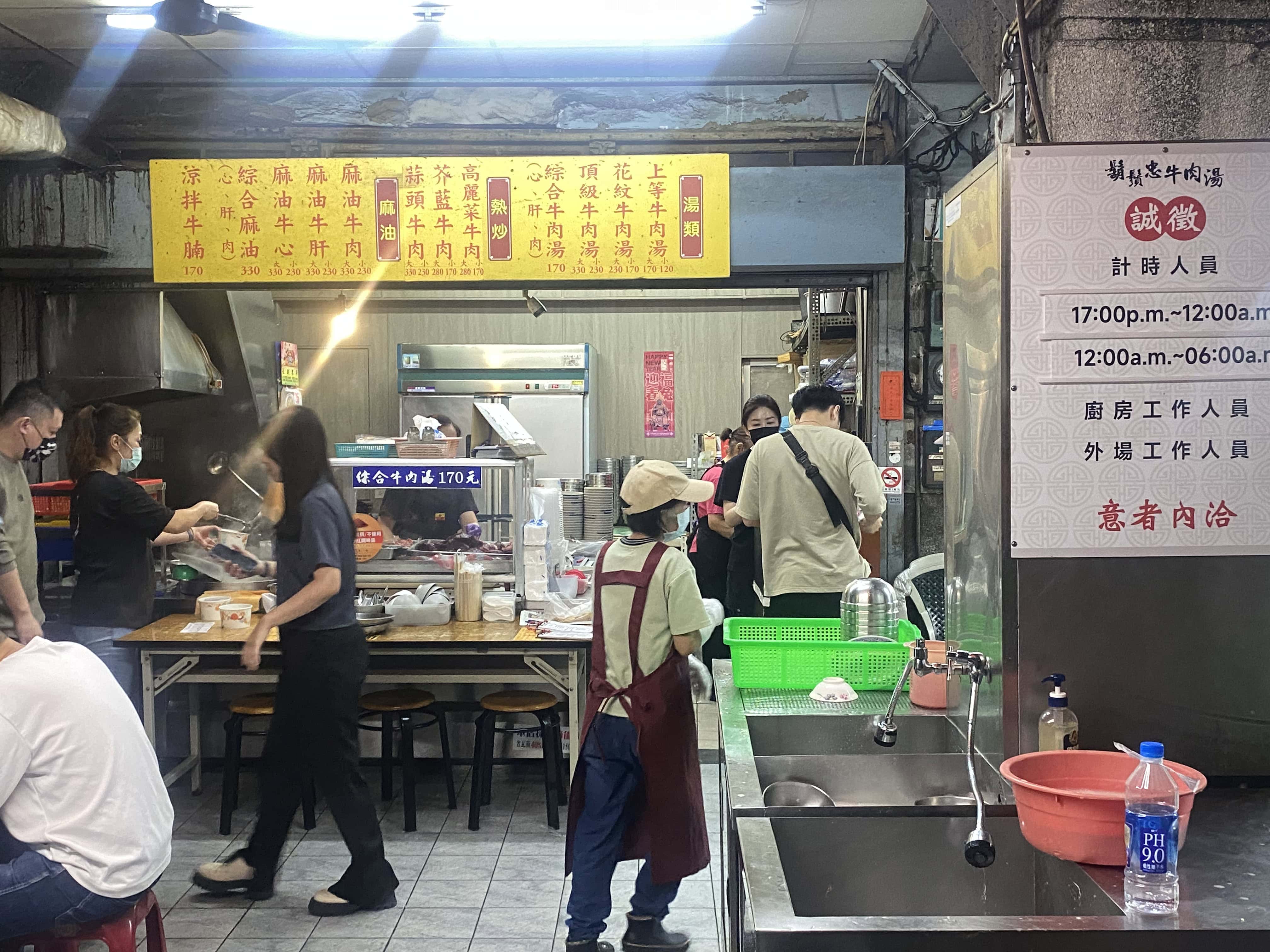 - 特色:創立於1993年的鬍鬚忠牛肉湯是老字號宵夜場,湯頭濃郁、牛肉軟嫩,深夜也能享用美味牛肉湯。