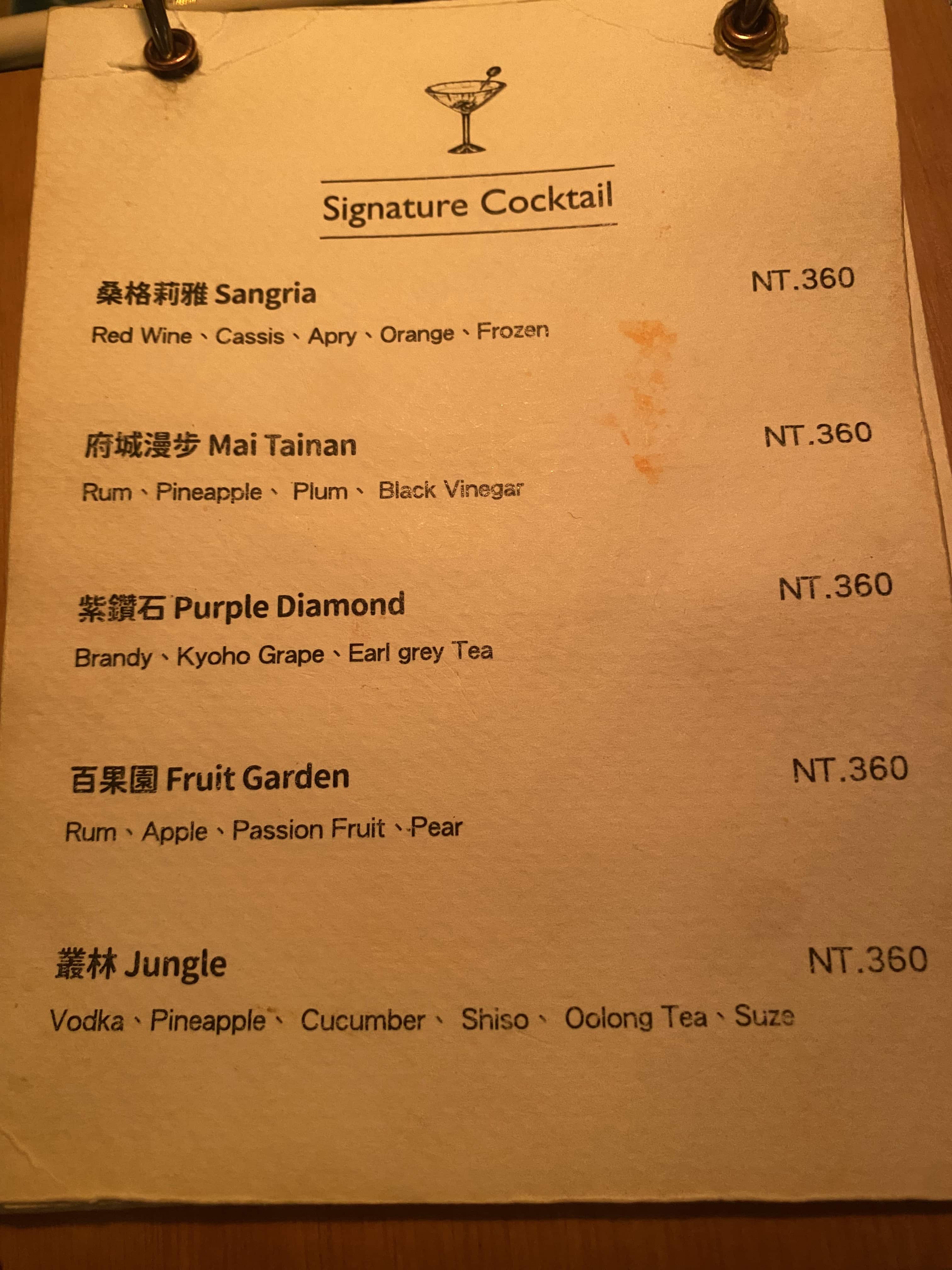 - 叢林 ($360):也是請他們推薦較輕盈的酒品,清甜。