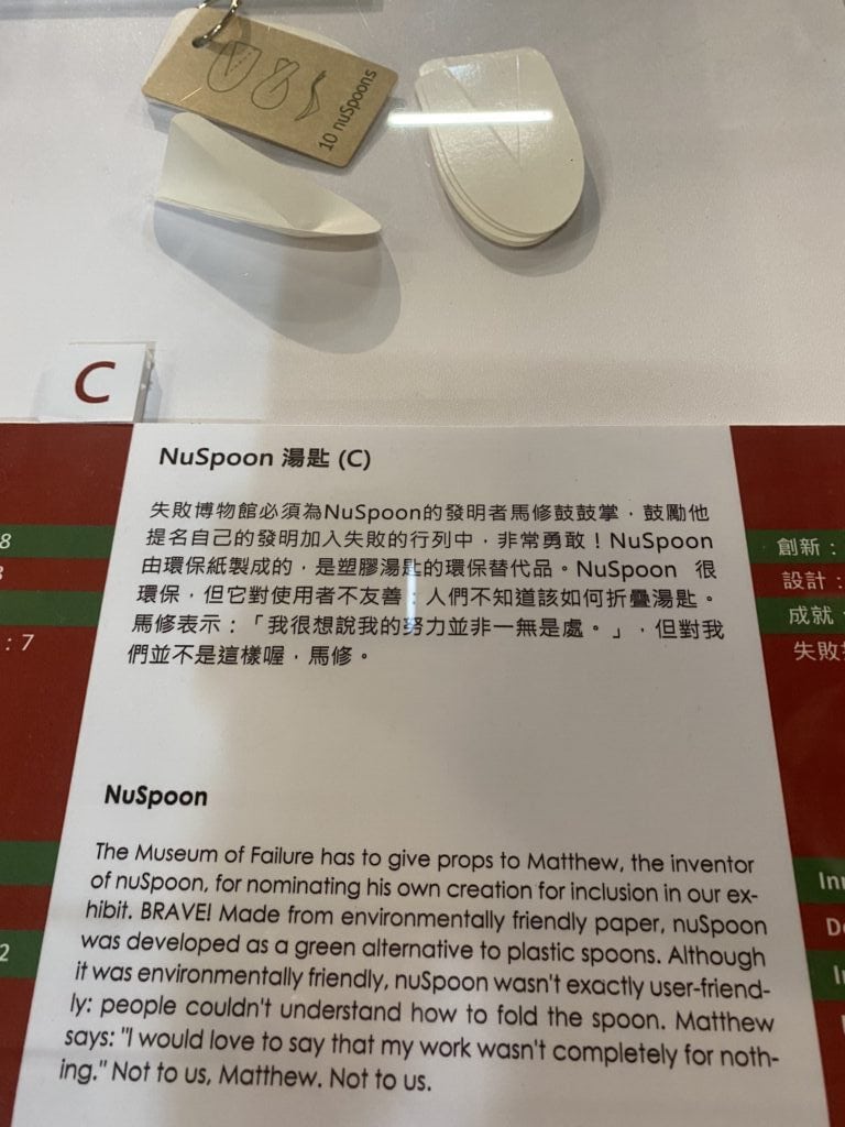 展覽上的”失敗”品們,有的是在設計上出包、有的是不夠瞭解消費者需求、有的品牌定位錯誤、也有很多是定價、行銷策略的失誤,更甚至是時代觀念下產生的謬誤。在產品的生產過程中,任一環節的“小”失足,都可能導致最終產品的失敗。然而,這些失敗品的共通點,是他們對『創新』想法的實踐力,引用發明家湯瑪斯.愛迪生的話:「我沒有失敗。我只是發現了10,000種行不通的方法。」的確,說不定「成功」就在「下一次」呢!展覽中還有很多有趣、且充滿“想法”的失敗品,大家快把握時機到現場看看吧~!