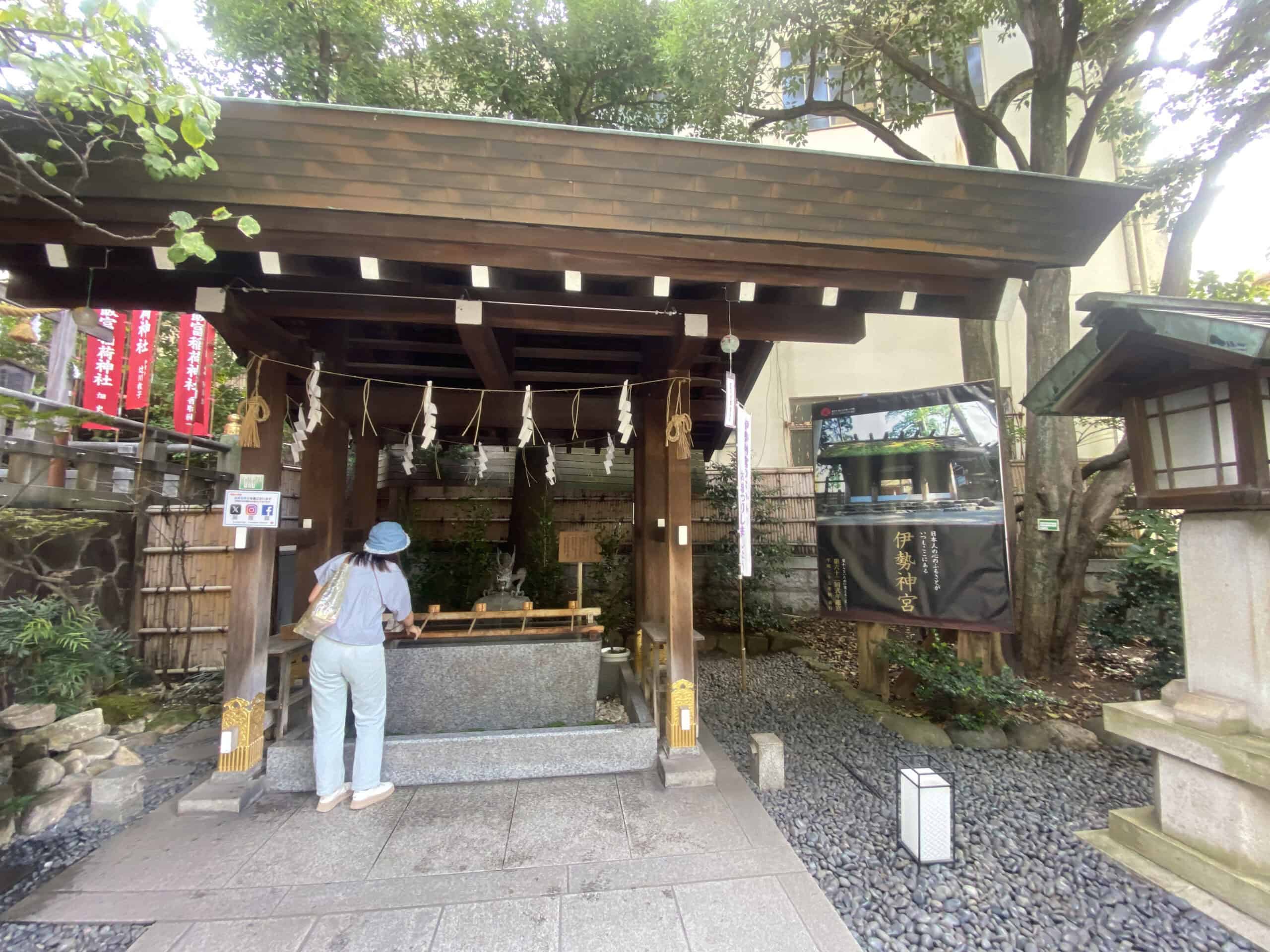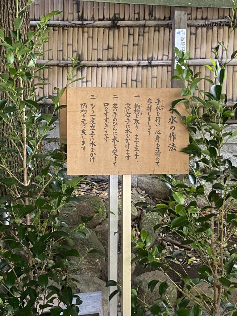 在參拜前,請先在手水舍淨化身心。使用一柄水勺,按照一系列的步驟進行淨化儀式。