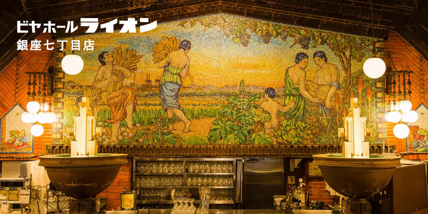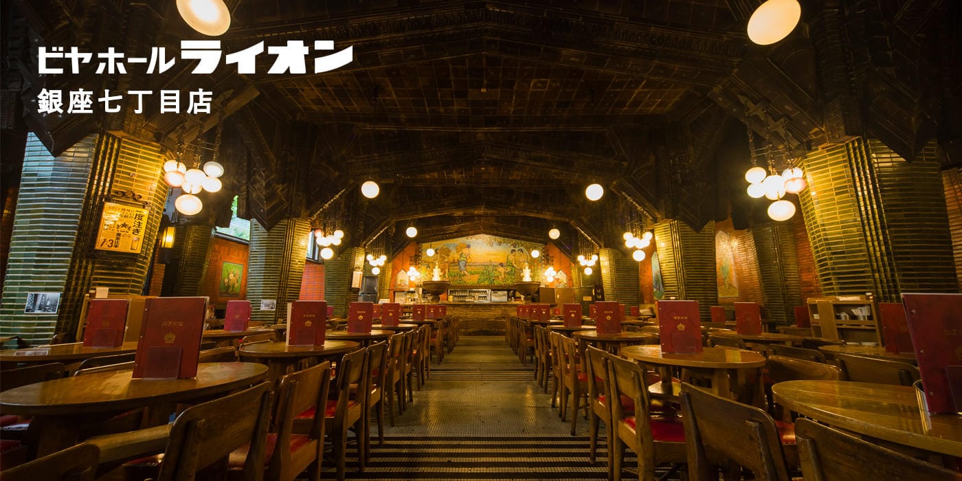 東京銀座的「Ginza Lion Beer Hall(ビヤホールライオン)-銀座七丁目店」創建於1934年,是日本現存最古老的啤酒館之一。其內裝在當時極為豪華,經過精心設計,獲得建築界及公眾的高度評價。戰後,該建築免於空襲破壞,並於1952年重新對外開放,至今仍保持著創建時的風貌。