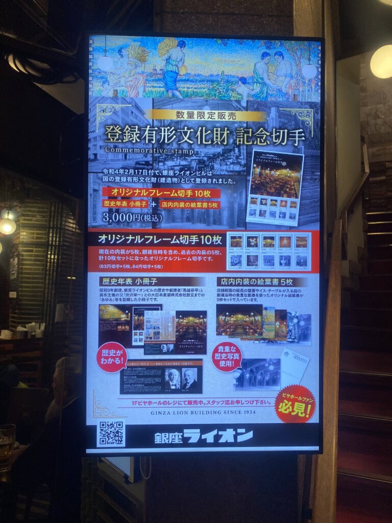 2022年被列為國家登錄有形文化財,彰顯其歷史價值。店內大幅壁畫以“豐收和收穫”為概念,運用大麥和葡萄為主題進行裝飾、描繪為收割啤酒麥而工作的婦女們,營造出能悠閒享受啤酒的氛圍。