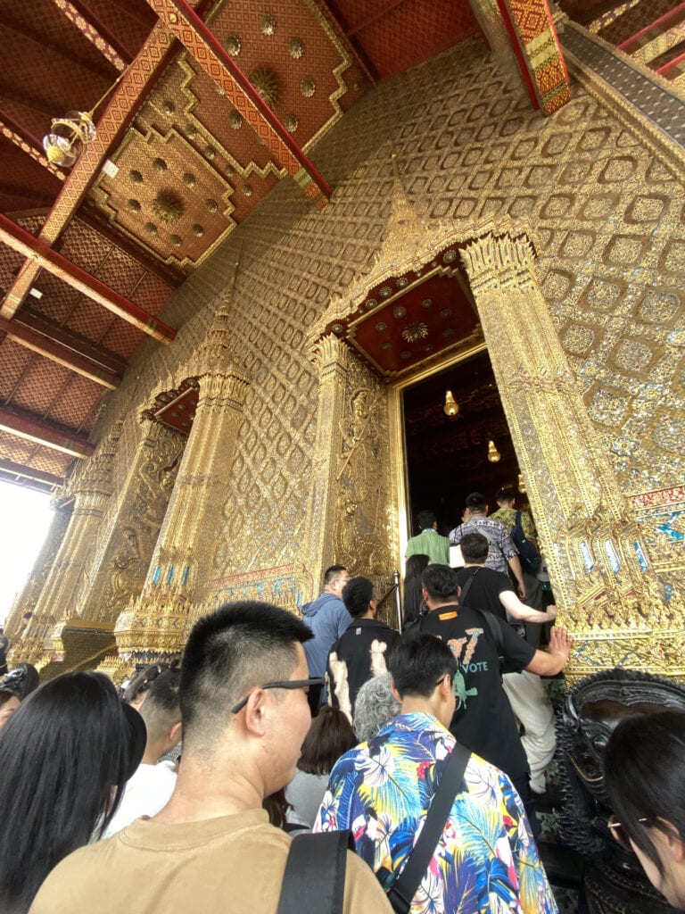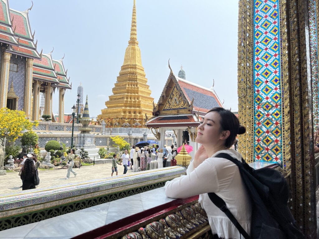 泰國算是我「第一個」實際旅遊的東南亞國家(之前只有新加坡轉機過),第一個景點就讓我深深震撼:「好金光璀璨啊!」和之前去過的教堂、佛寺完全不同,是全然迥異的建築風格與美學,真的是來曼谷一定要一睹的經典景點。