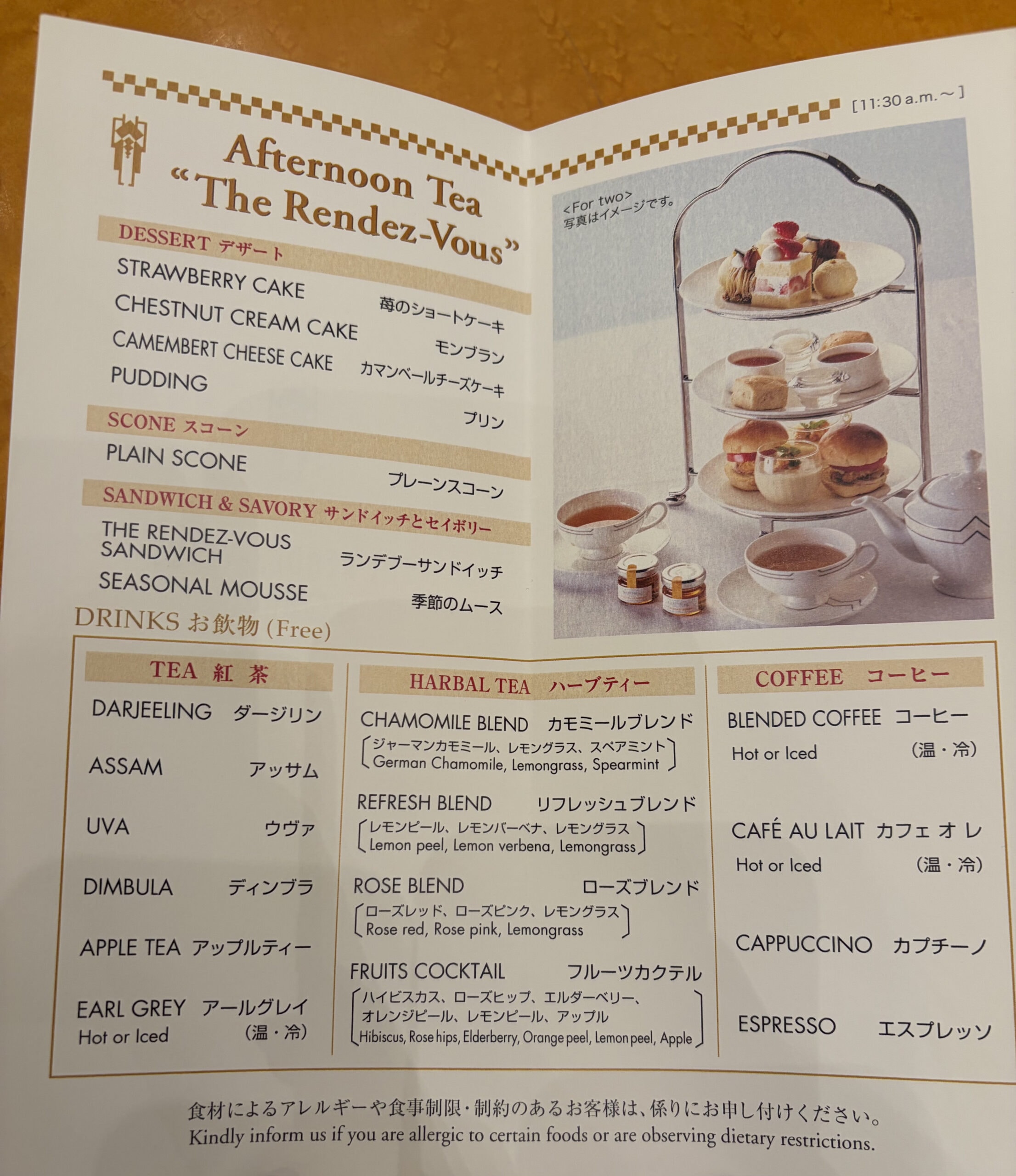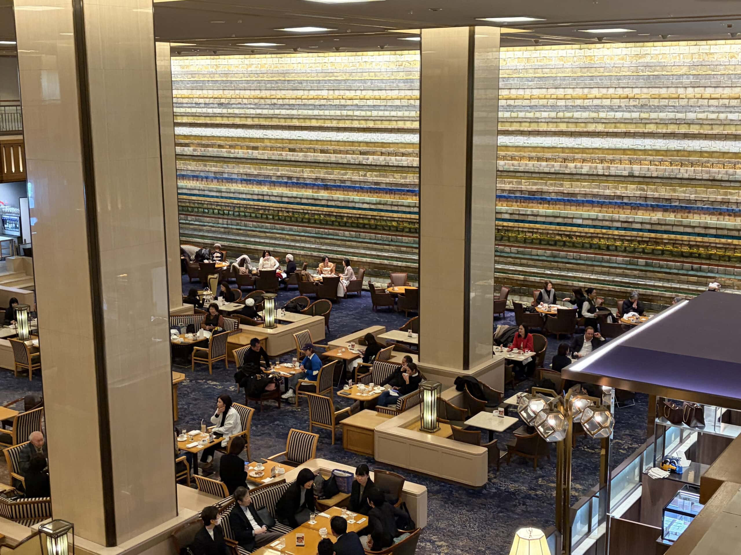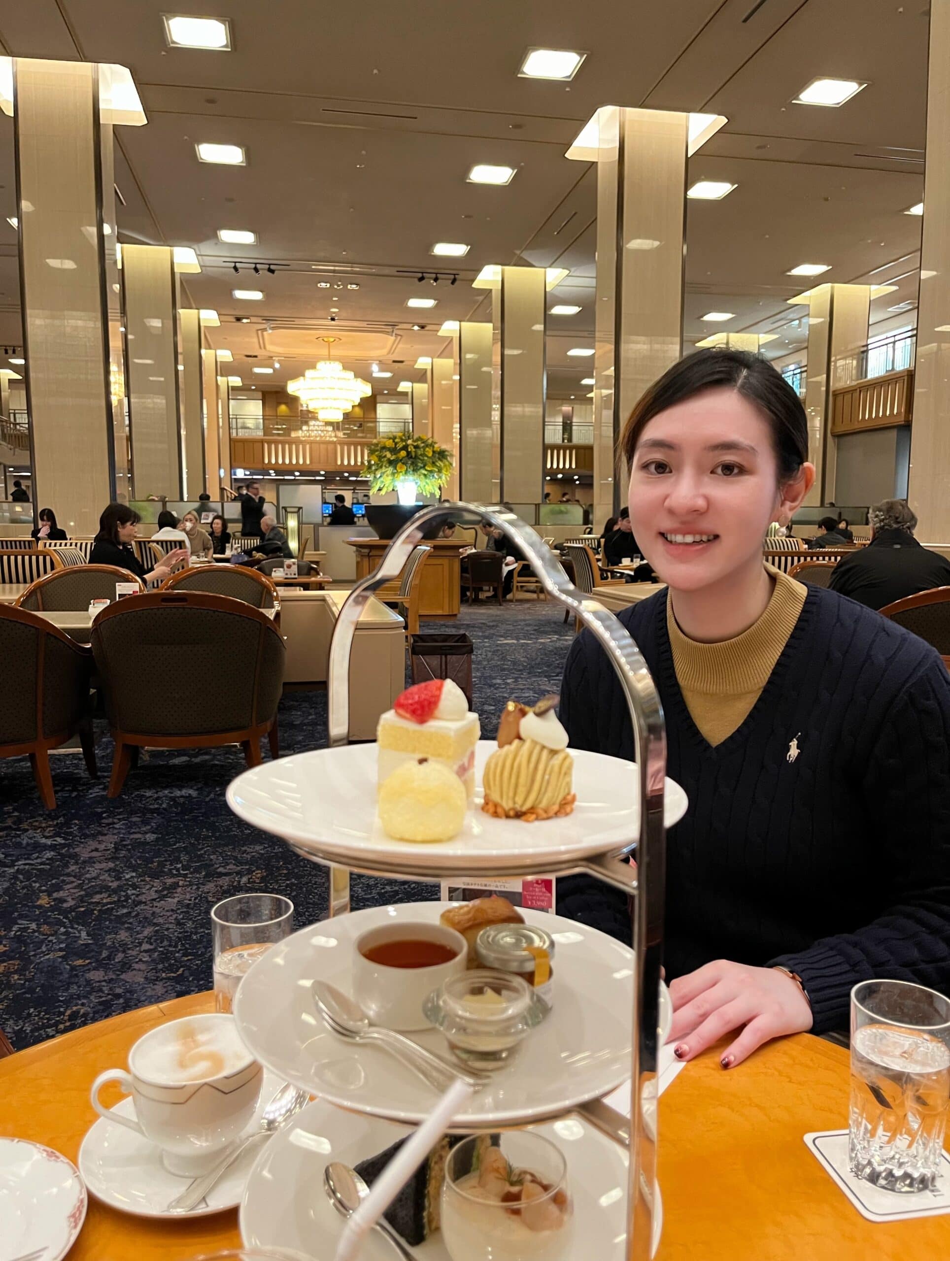 Rendez-Vous Lounge 擁有東京都內飯店少見的寬敞座位數(高達 155 席)。非常推薦在這裡享用下午茶,點杯咖啡。可以線上先預約,這次去的時候雖然線上顯示已無時段,但現場提供號碼候位,我們等個15分鐘就入座了,平日人潮並不多。現場很多人都點下午茶方案,可以點一人份(印象中6,900日圓)、兩人份,兩人份就是所有點心兩份這樣~