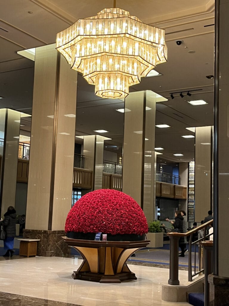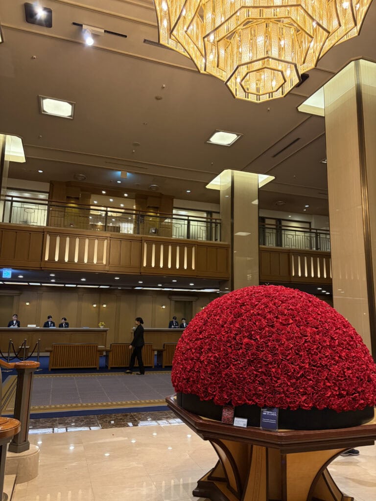 一走進帝國飯店的大廳,絕對會被正中央那座巨大的「紅玫瑰花束」震撼!這是帝國飯店最經典的象徵&拍照打卡點(禮品區也有賣花束裝飾伴手禮唷! J媽本來想買但售罄了)。