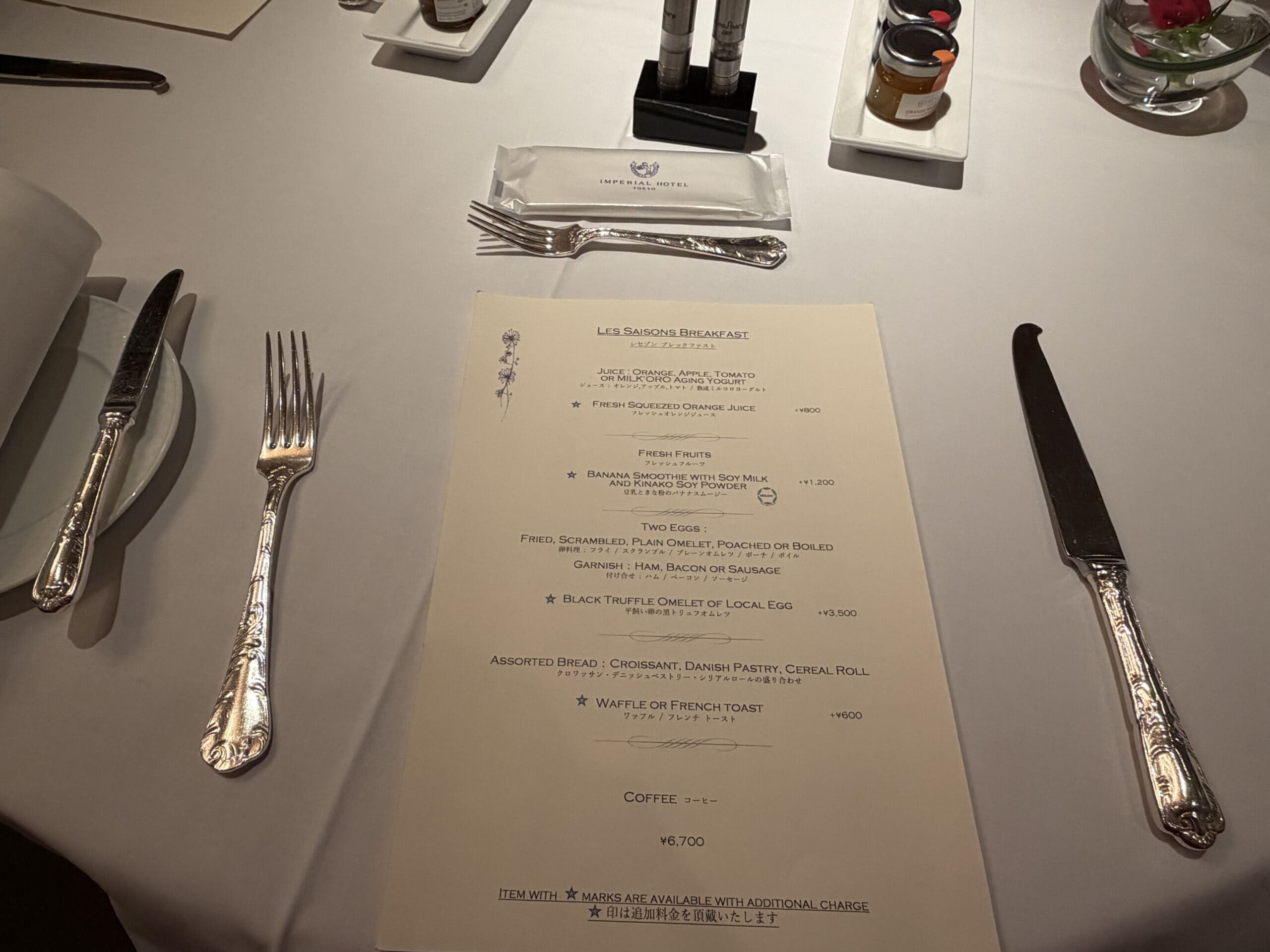 有時候早上真的不想化妝換衣服,那就叫客房服務吧!穿著浴袍,坐在窗邊看著皇居的美景,讓專人把熱騰騰的帝國飯店早餐推車送到床邊,這才是度假的終極奧義啊!