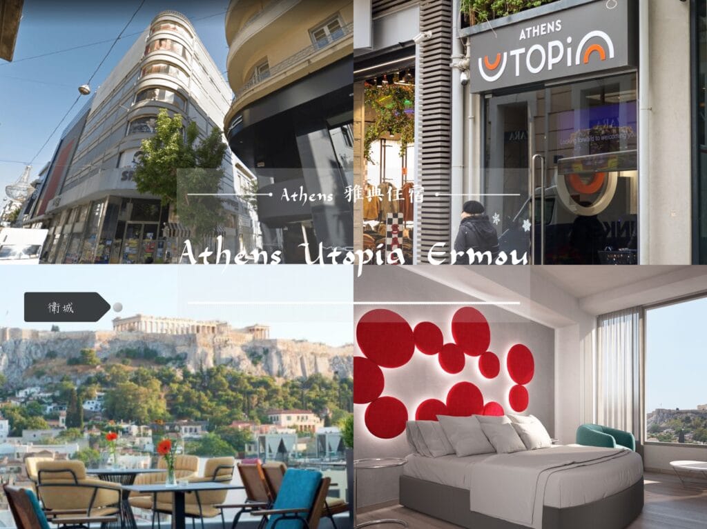 | Athens Utopia Ermou 點我往下 | ⭐⭐⭐⭐ | $$ | 住在逛街大道上 飯店就在雅典最熱鬧的購物街 Ermou St. 上,下樓就是 Zara 和 H&M。風格現代簡約 |