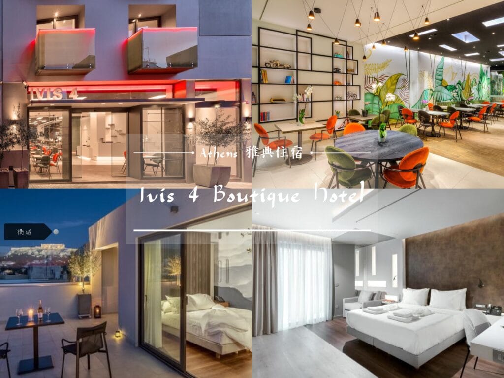 | Ivis 4 Boutique Hotel 點我往下 | ⭐⭐⭐⭐ | $$ | 藝術設計、美食 位於文青區 Psirri,飯店充滿塗鴉藝術與綠意。樓下餐廳評價很高,走路去逛手作小店很方便 |