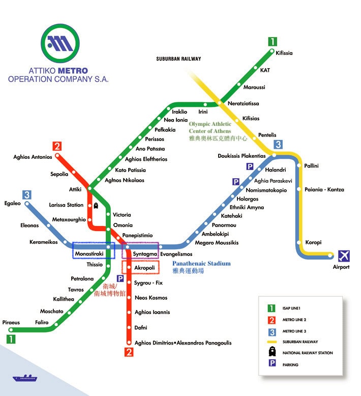 - Acropoli 地鐵站:哈德良拱門、哈德良拱門、奧林匹亞宙斯神殿、衛城博物館、雅典衛城