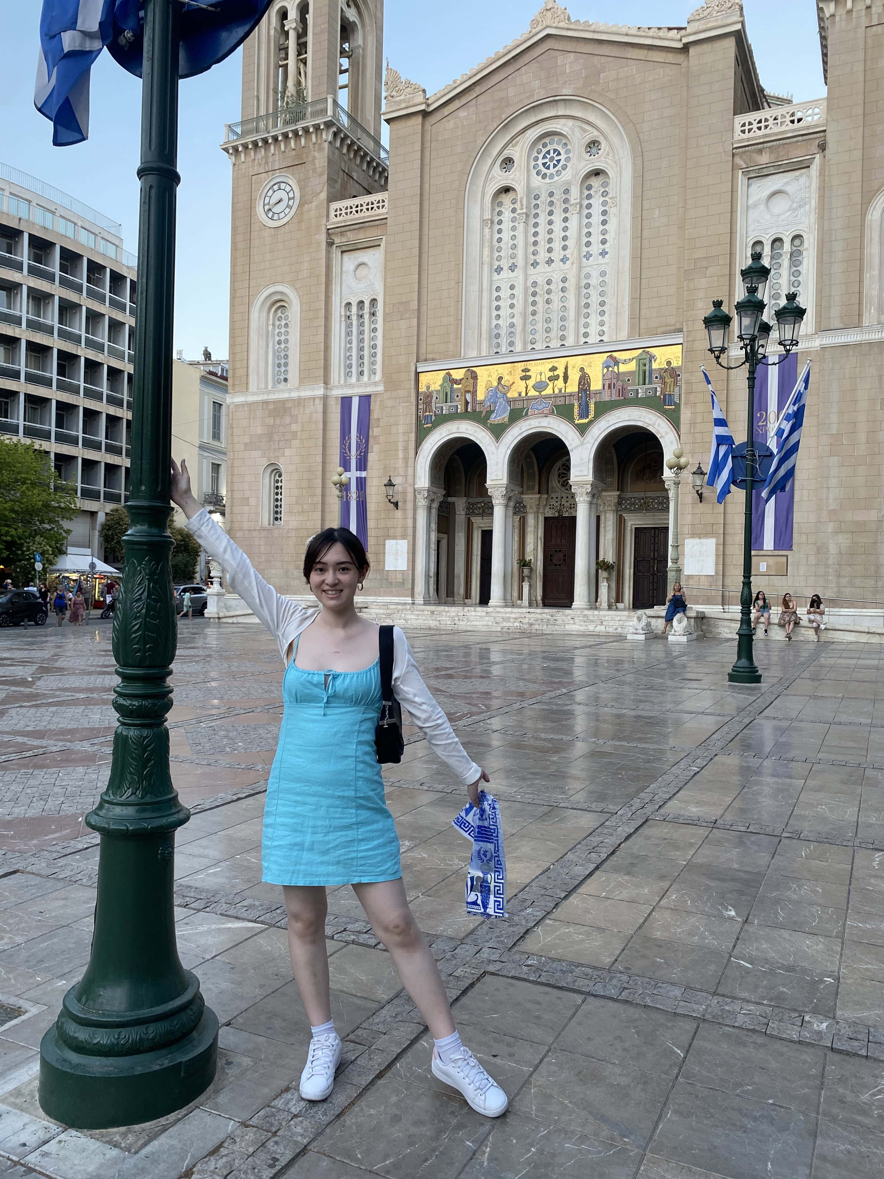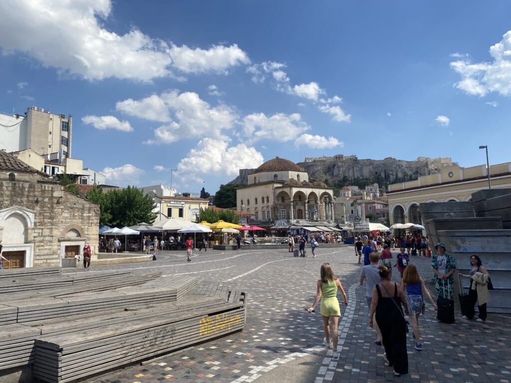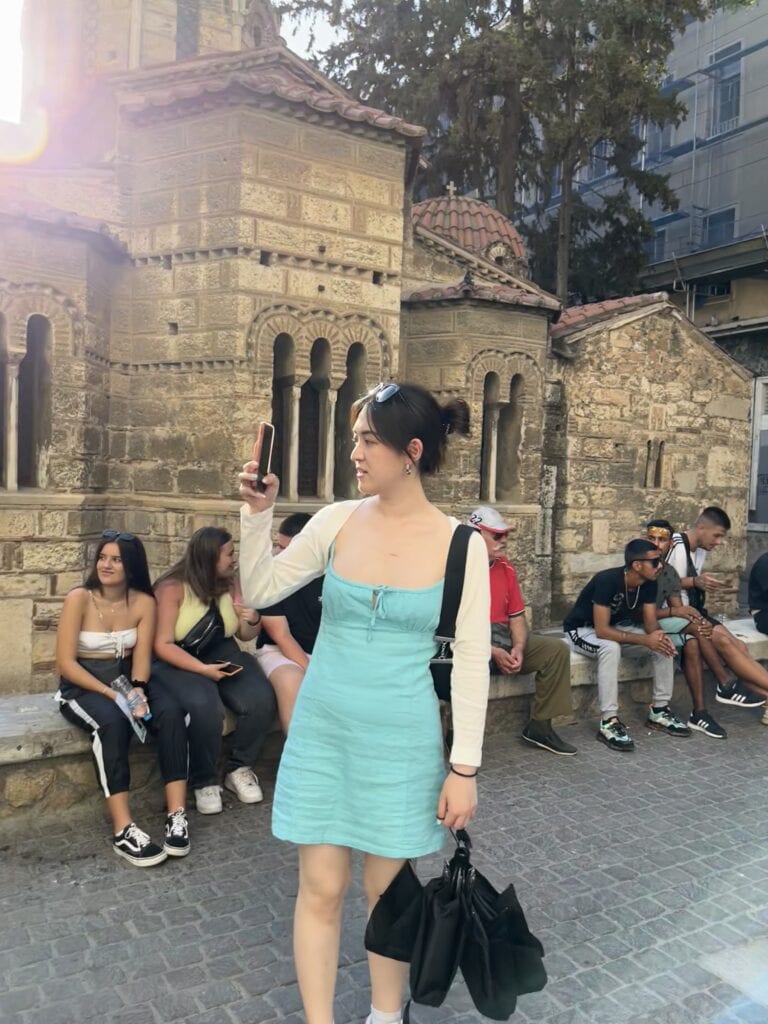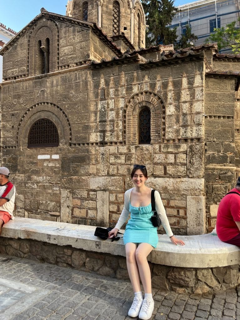 建於 11 世紀的希臘東正教教堂,矗立在繁華的 Ermou 購物街中心,是雅典現存最古老的拜占庭建築之一。當時有一群街頭藝人在這裡表演,非常熱鬧。