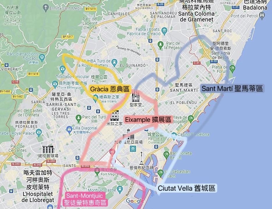 巴塞隆納主要分哪幾區?
