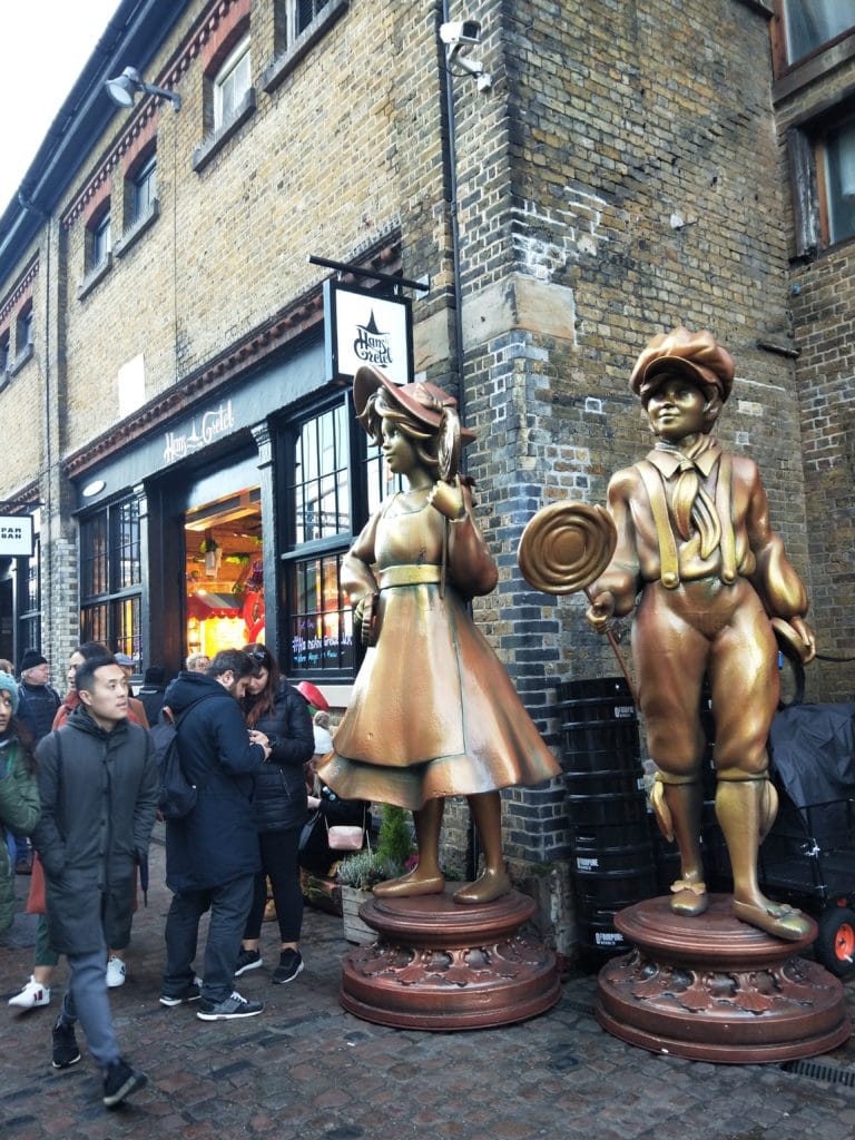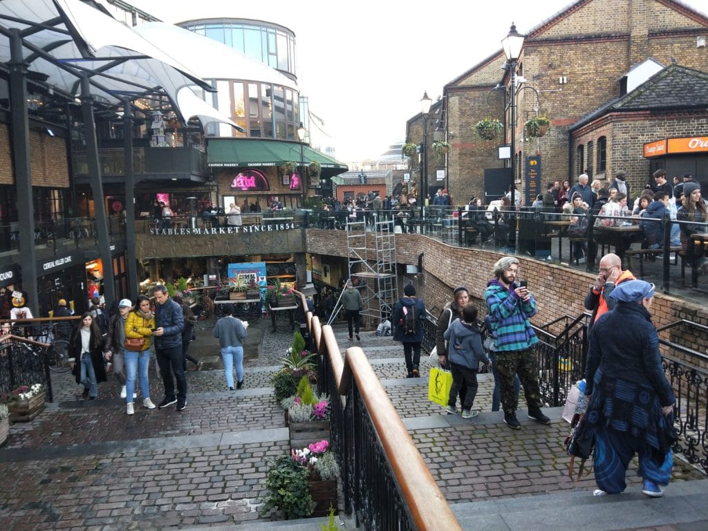 由 19 世紀的廢棄馬廄改建而成,充滿了工業風的歷史感,走道上隨處可見巨大的青銅馬雕像,呼應其歷史背景。這裡有全倫敦最密集的古董店、二手黑膠唱片與古著服飾。艾美·懷絲銅像 (Amy Winehouse Statue) 就座落在這區,歌迷必拍。