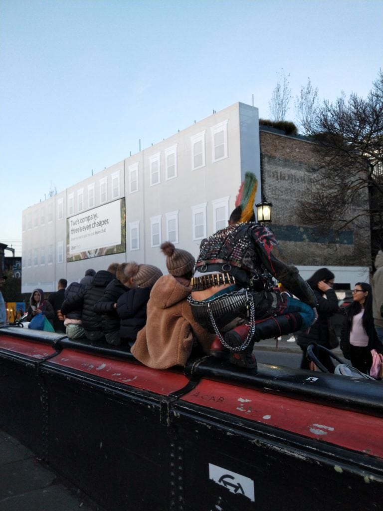 這是我這次來camden感受到最punk的一隅了吧😂!他在運河橋上舉著:「拍照一次一鎊的厚紙板」,臉上是滿滿的刺青,4個小朋友正與他合影