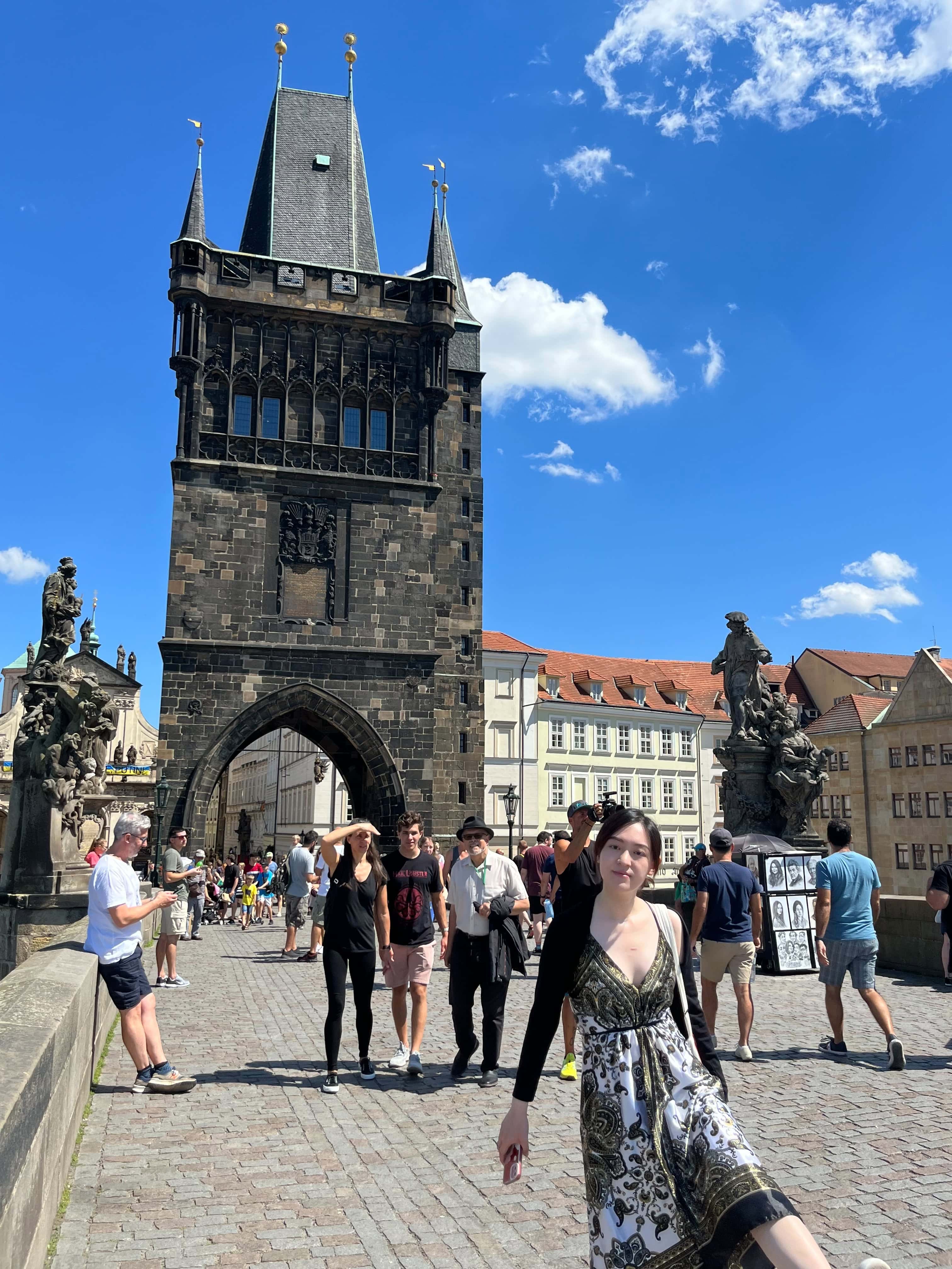我們從飯店到舊城廣場一定會經過火藥塔,這裡人潮開始變多,非常清楚記得塔附近有兩家台灣品牌的珍珠奶茶店哈哈哈哈哈。