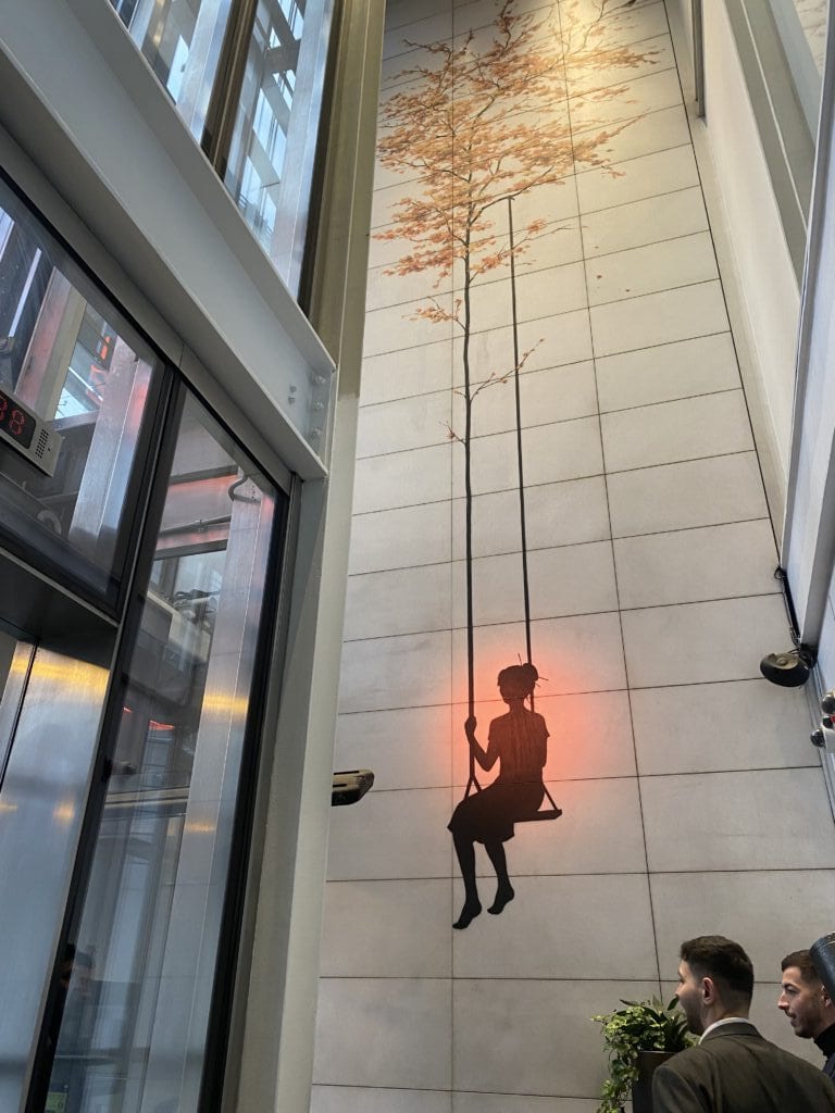 進到建築物內,就有服務人員協助核對預約的餐廳&時間,搭上電梯、穿過鳥居(樓下好像是一間日式餐廳😂),走上樓梯,側邊可以看到倫敦地標子彈大夏,經過Bar區(很多上班族下班後的聚會處~),就進入餐廳啦!