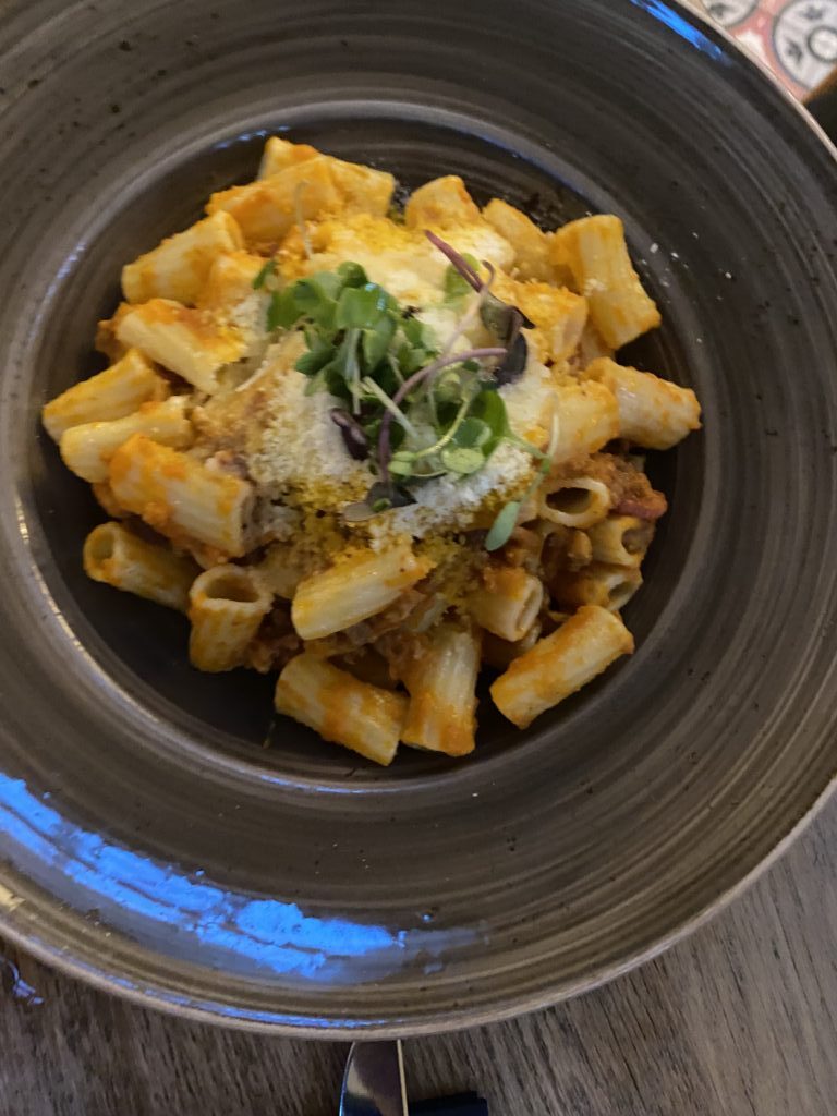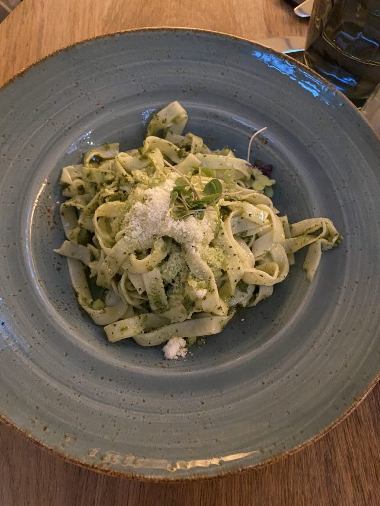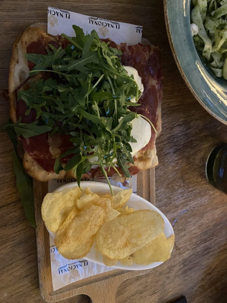 我們去的時間點是晚餐巔峰期 21點左右,所以四家餐廳幾乎都需要30分鐘以上的等候時間,剛好三人也不是很餓,便選擇了門口一進來右方的輕食餐廳 La parada,點了義大利麵&三明治輕食,好好地享受悠閒的南歐夜晚~