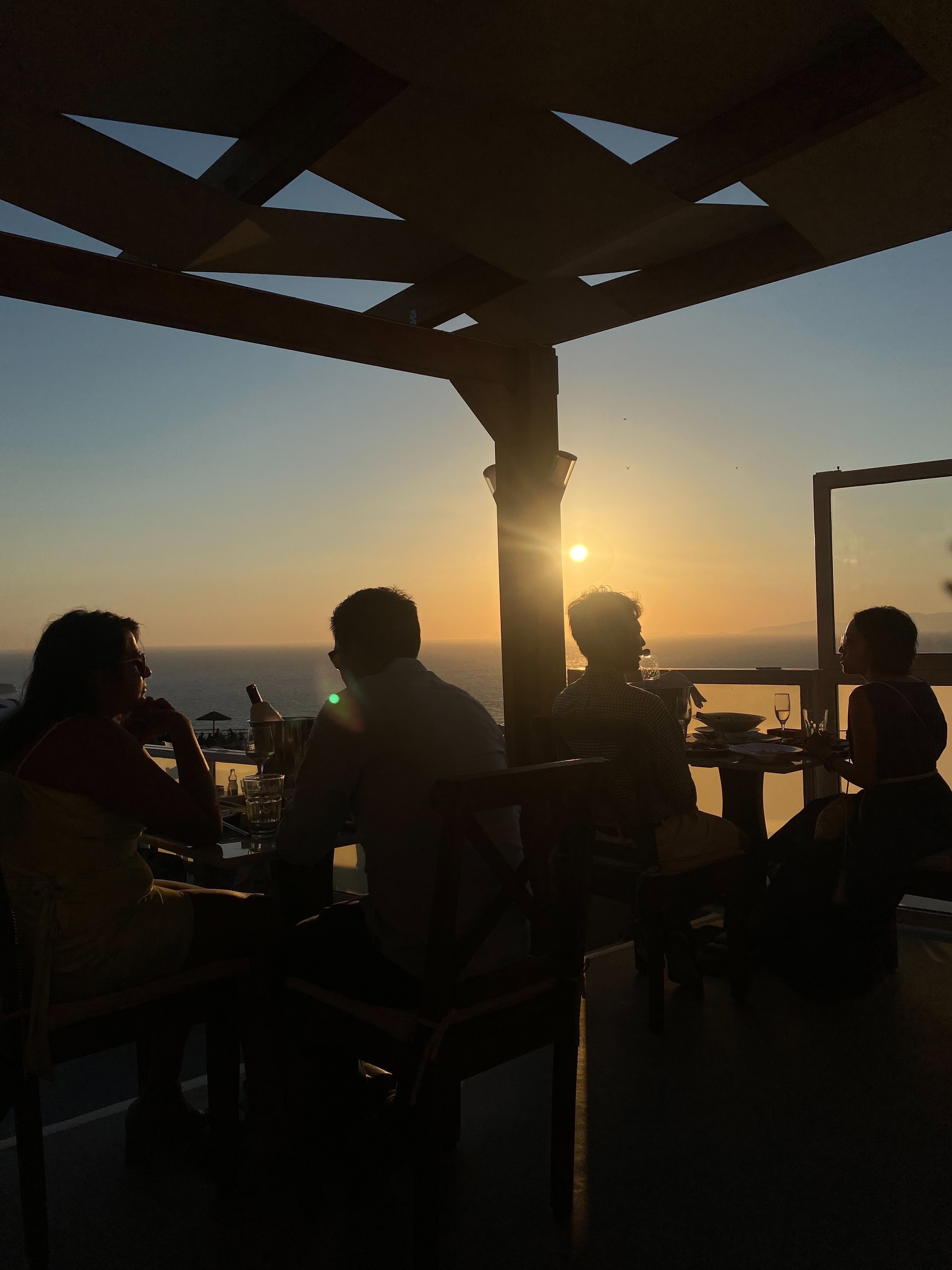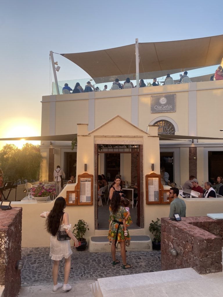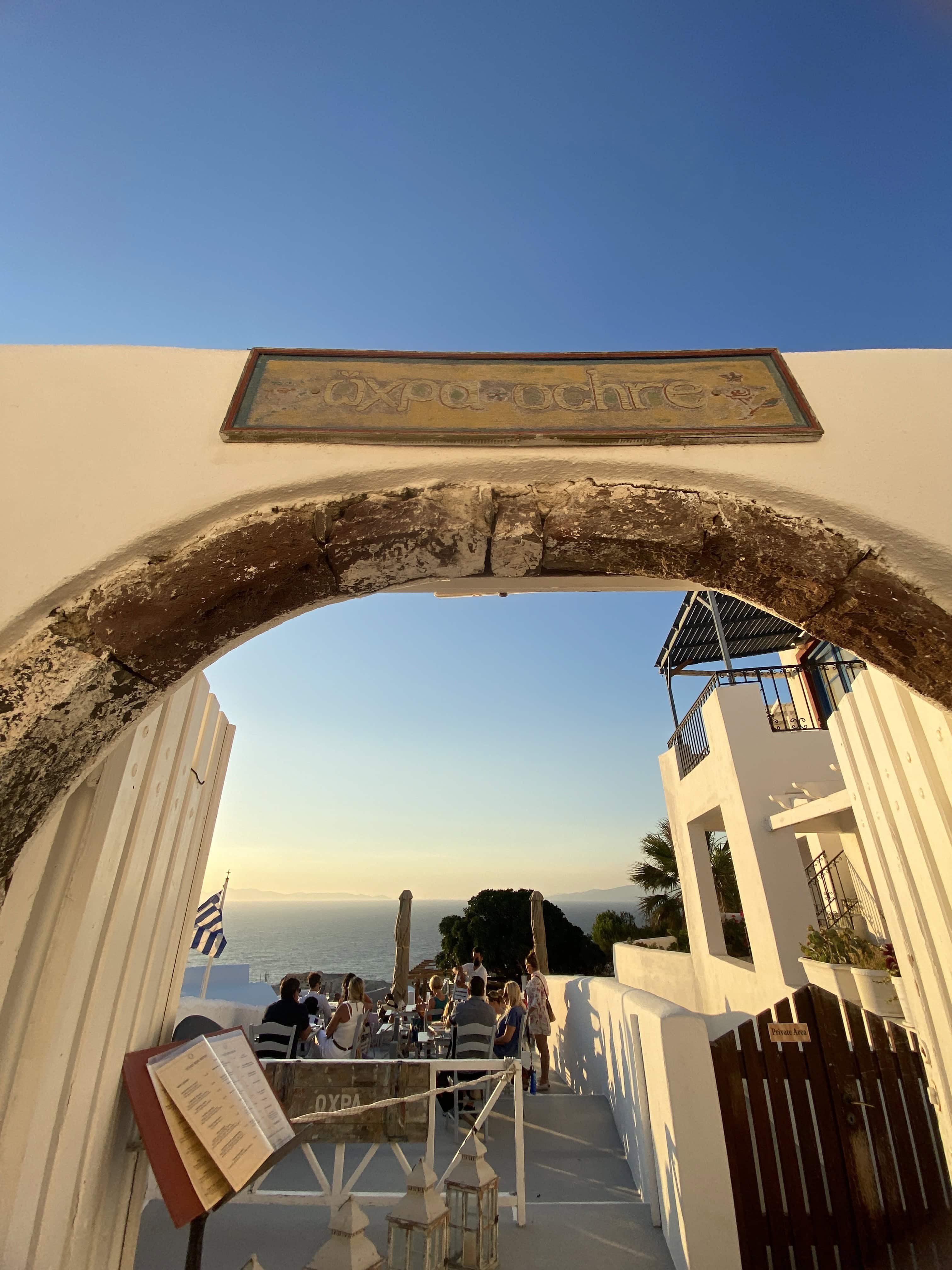 這家餐推薦人,就是載我們到 Oia伊亞飯店的司機小哥推薦的! 身為本地人的小哥特別推薦的看夕陽餐廳Ochre Wine Bistro ! 直接位在聖托里尼東北角,夕陽海景第一排,每天傍晚都客滿,一定要提前預約,情侶、夫妻、家人們,一邊欣賞夕陽落入海平面一邊享受美食~