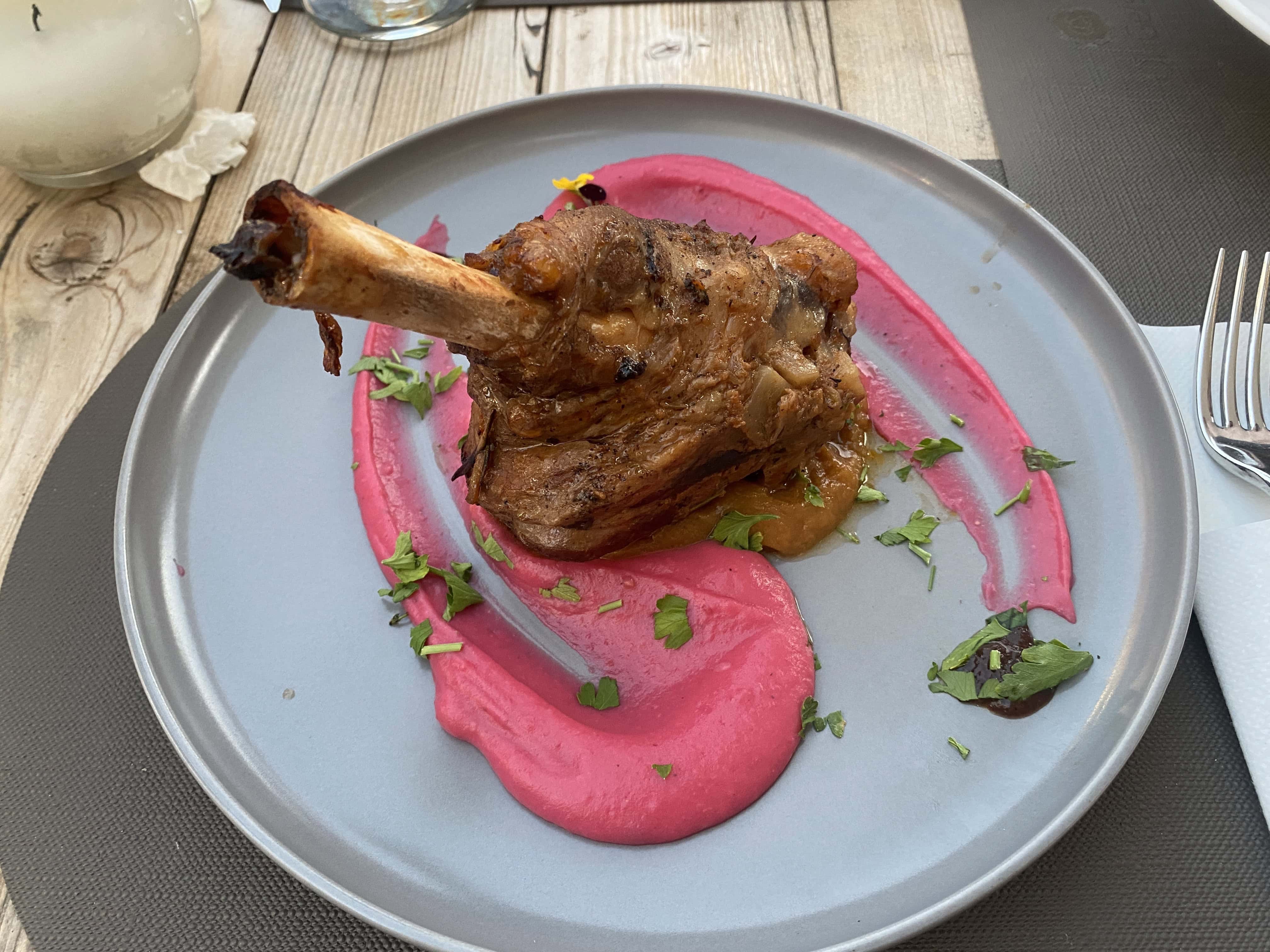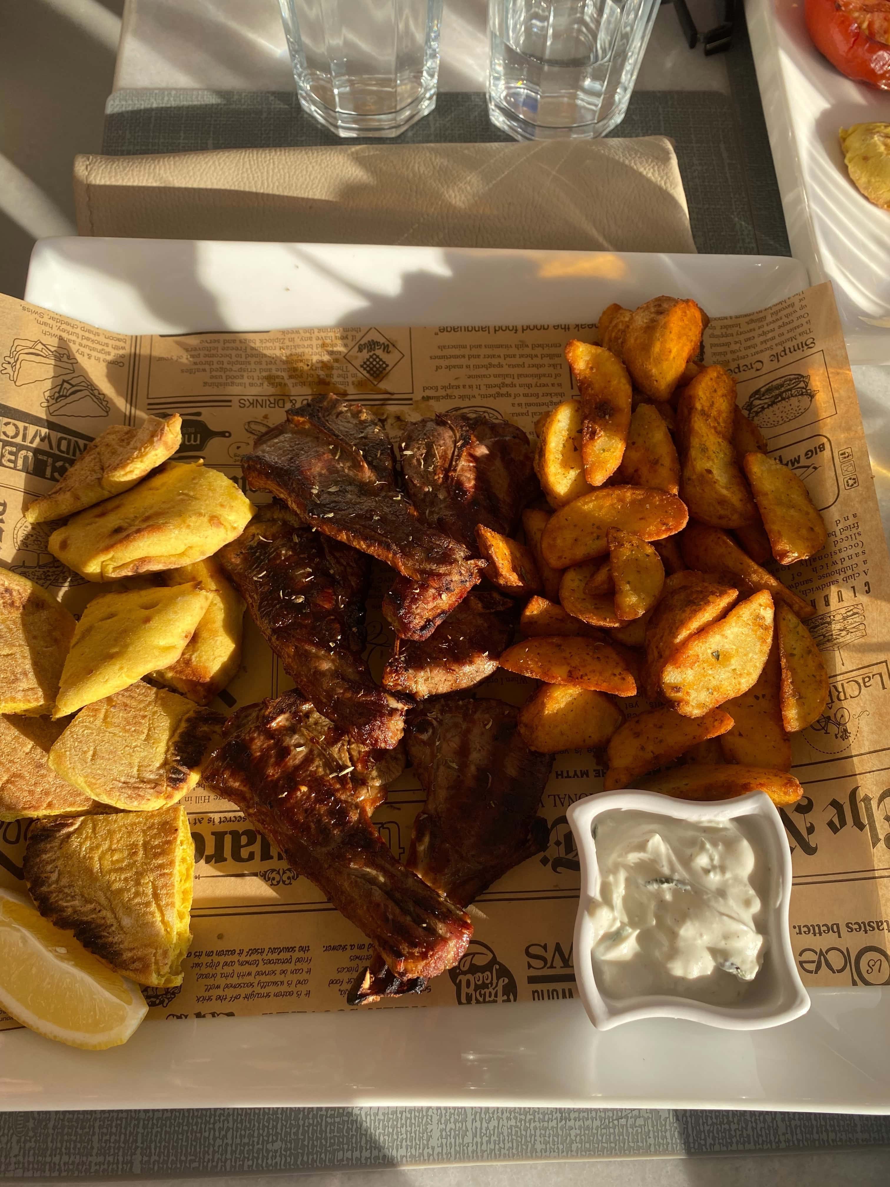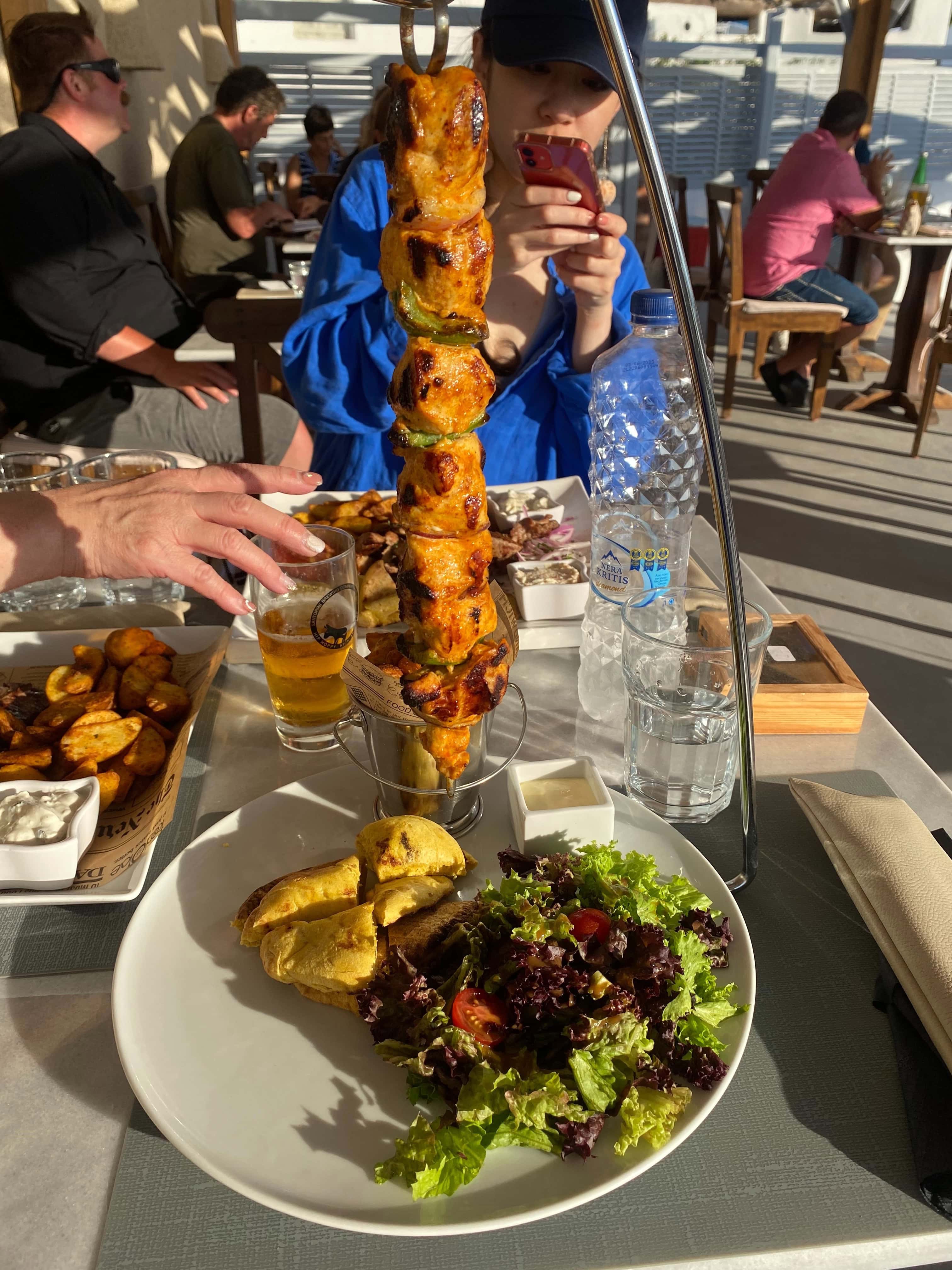 有歌手表演的餐酒館,二樓可以很棒的看到夕陽(需要提前預約),因為我們是臨時找的餐廳,所以一樓有座位就直接決定吃這家了😂 點了海鮮燉飯&羊排,餐點不錯!只是因為海島風砂大,我們一坐下來盤子上都是沙子哈哈哈哈哈,強烈建議來這家的話,要提前預約二樓的座位!當天二樓全客滿,都是欣賞夕陽的旅客~