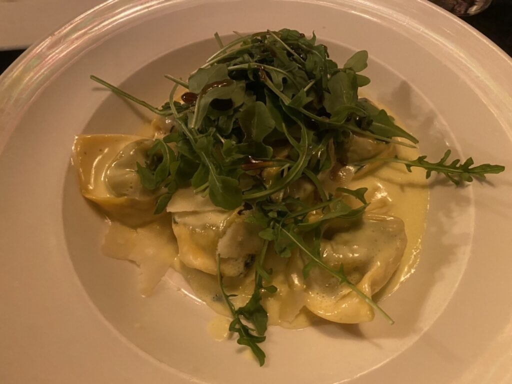 - filled with ricotta & spinach with truffle oil and creamy basil sauce