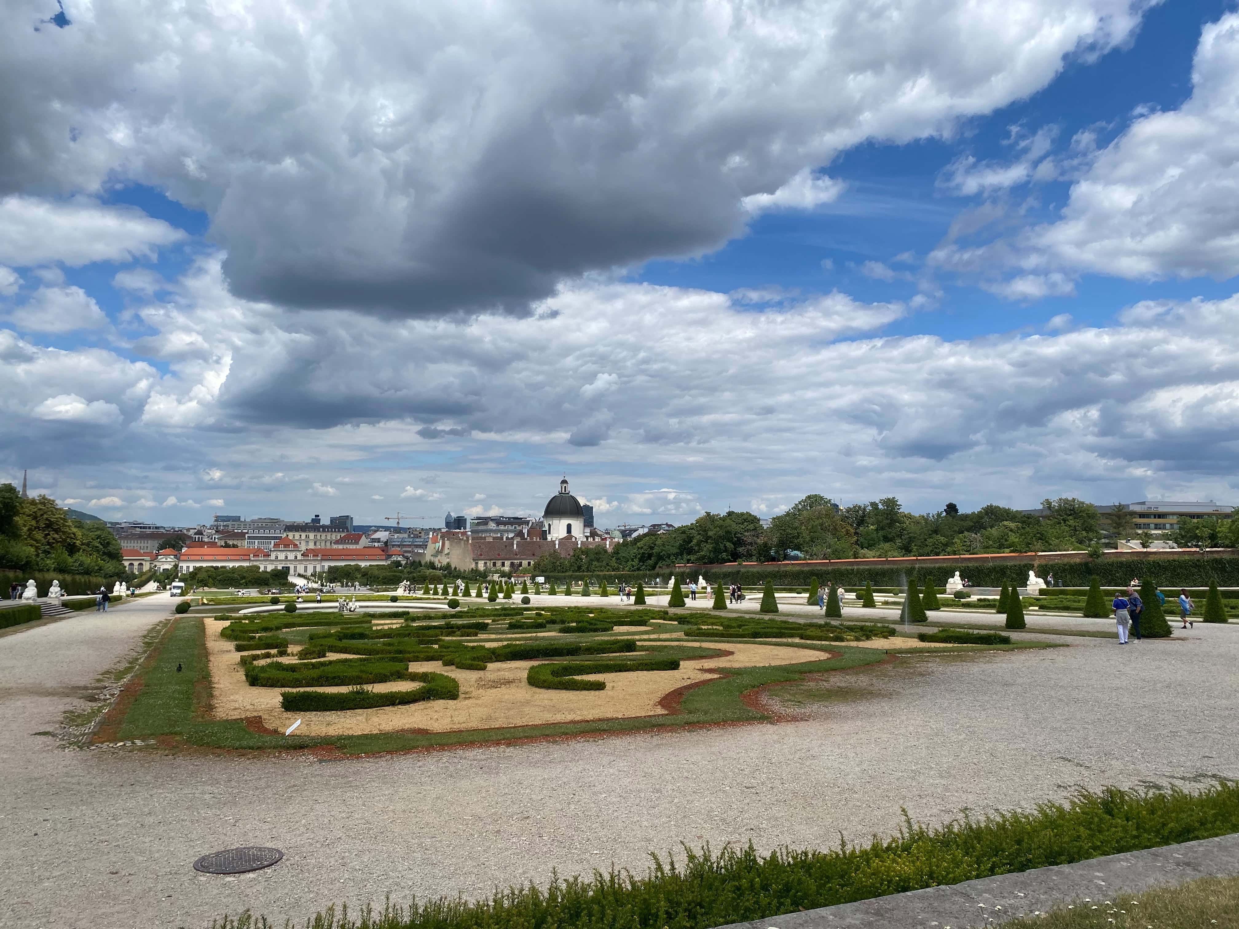 考慮到距離遠近+時間考量 (還要搭火車前往布達佩斯),因為美泉宮需要更多的停留時間,因此我們就決定去美景宮 (Schloss Belvedere)啦!大家通常都會為了一覽克林姆(Gustav Klimt) 的「The Kiss 吻」畫作而只逛「上美景宮」,這次既然都決定把時間都留給美景宮,因此我們買了上&下套票!逛好逛滿啦~~