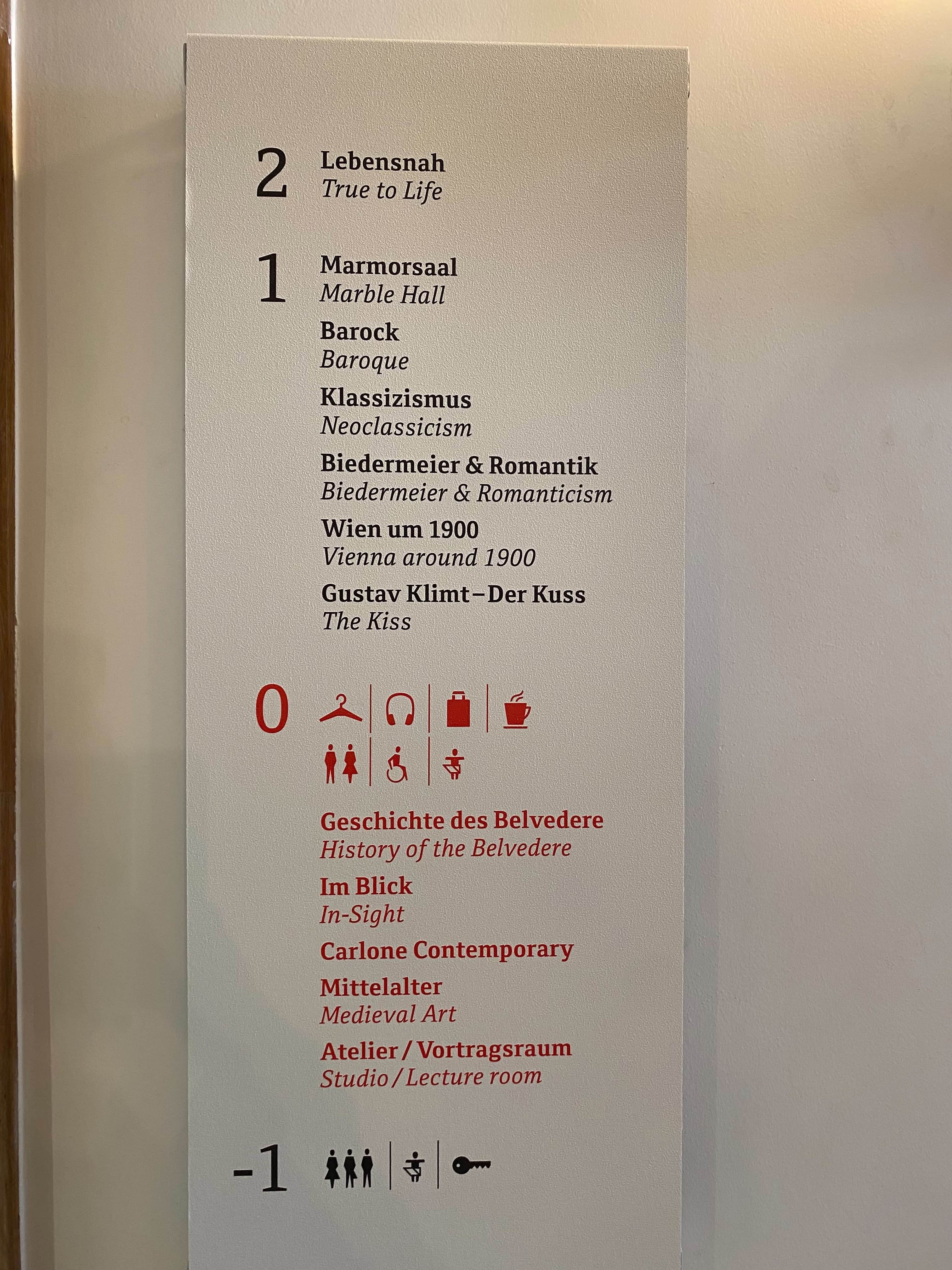 - 上宮: 主要展示 19-20 世紀奧地利藝術,包含克林姆 (Klimt)、席勒 (Schiele) 的作品