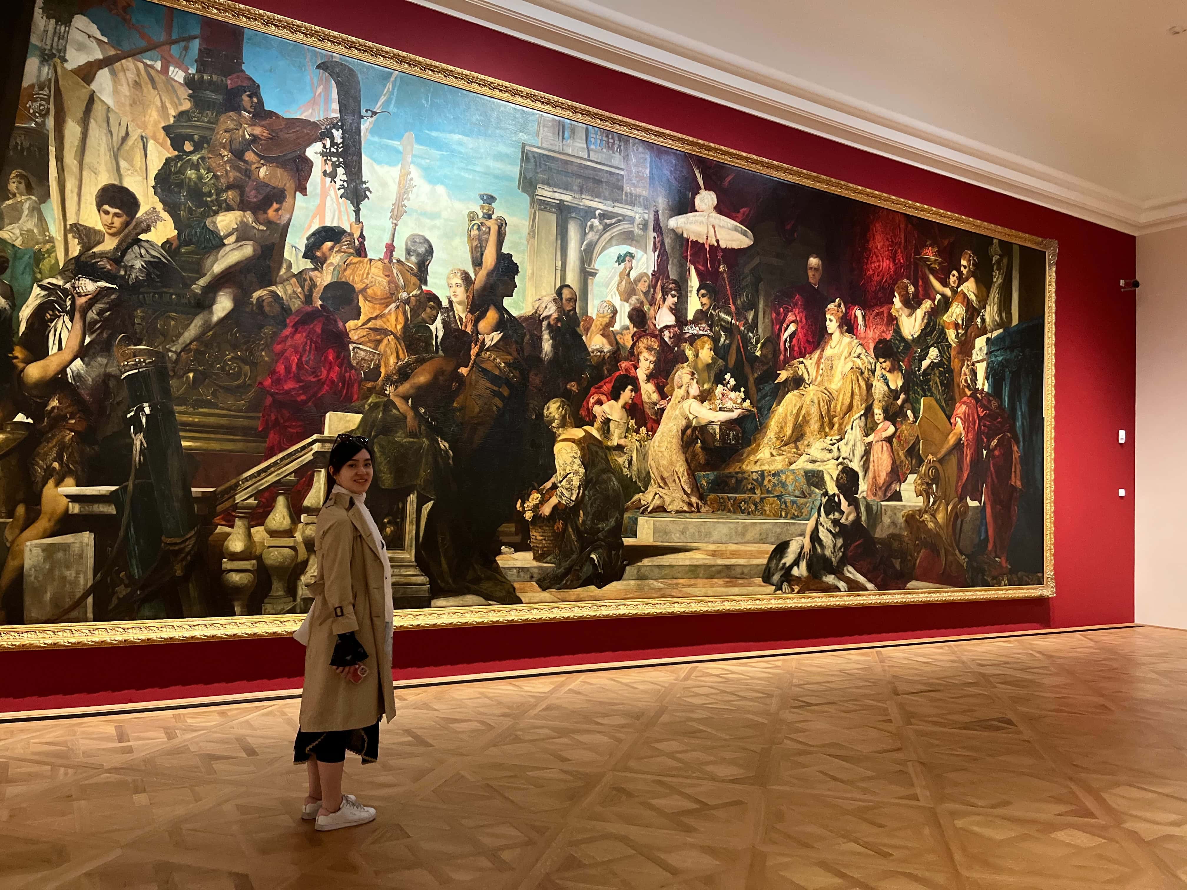 大家在歷史課本上一定看過!。新古典主義描繪了拿破崙騎馬翻越阿爾卑斯山的英姿。畫中他手指蒼天、戰馬騰空,象徵無畏的領導力。大衛將史實理想化,完美展現了強大的帝王氣勢,是美景宮必看的歷史珍藏。這幅畫有五個版本(其他在羅浮宮等地)。