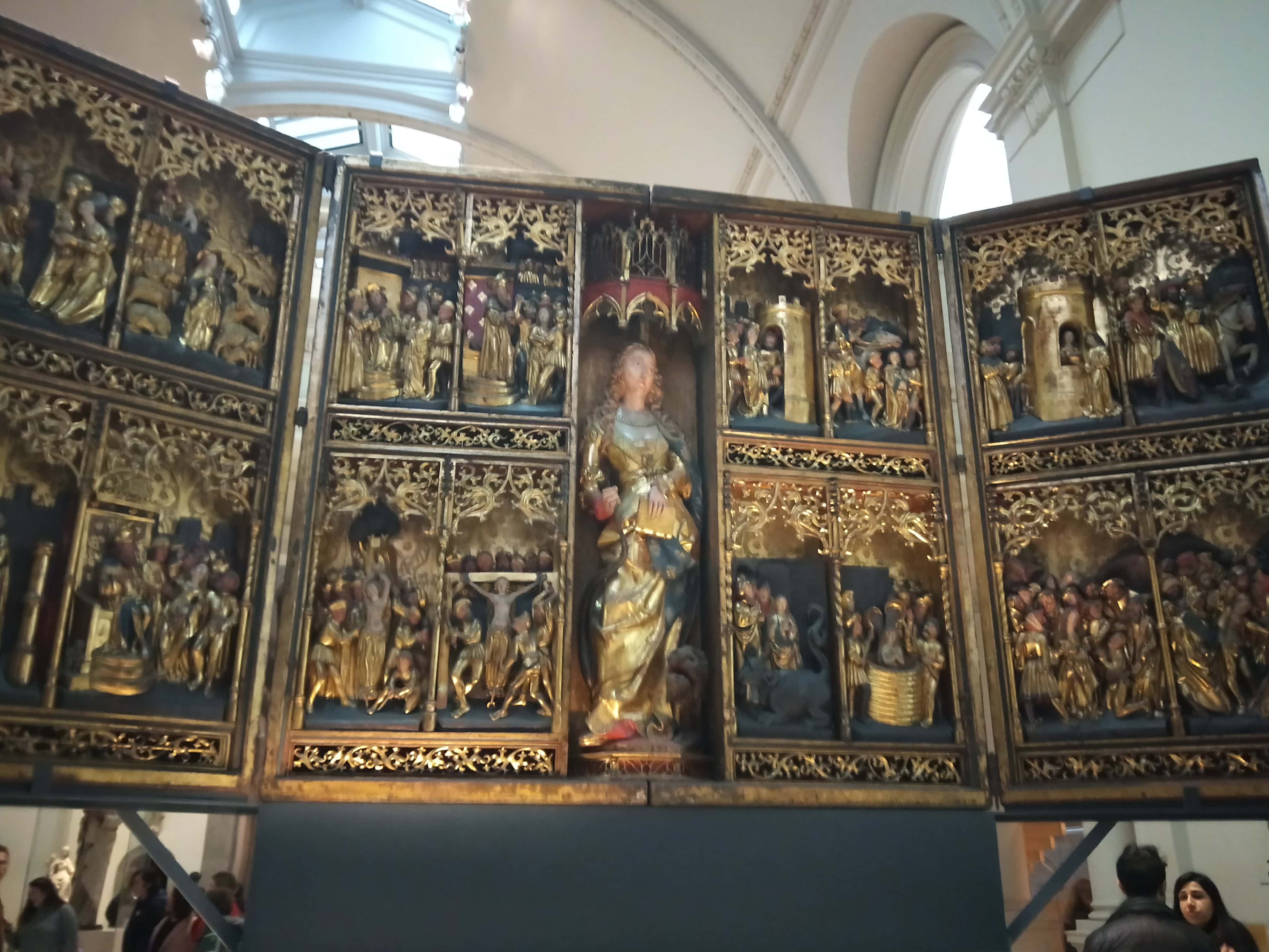V&A總共-1~4樓,有當季特展與常駐展區,從16世紀歐洲繪畫到21世紀現代設計,從伊斯蘭地毯到佛教藝術,從時尚潮流到攝影藝術,從銀飾到貴族櫃具等等,不像Tate Britain 以歐洲畫作為主,也沒有 Tate Modern 以現代藝術為大宗。V&A博物館的館藏更多元、地域跨的更廣、時間軸也拉的更長,整體而言雕塑、古時期生活器具的展示會相對繪畫多。