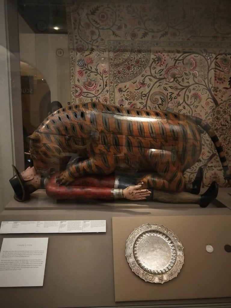 南亞展區的重點木雕藝術,來自南印度,「提普·蘇丹的老虎」是為了南印度的梅索爾(1782-1799年)統治者提普·蘇丹而製。這個幾乎等身的木製半自動機器人由一隻老虎襲擊一個穿著歐式衣服躺臥在地的人組成。